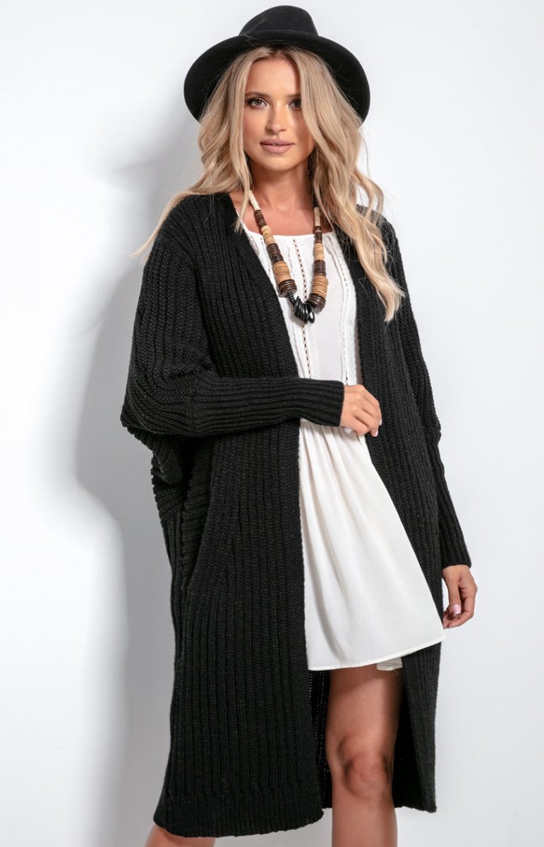 Czarny długi kardigan damski F1055